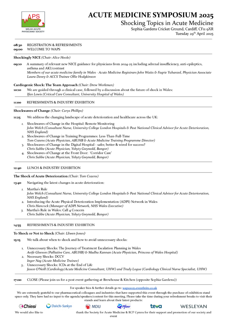 - Chance to chat to the Acute Medicine family in Wales – join us at Brewhouse & Kitchen opposite the venue for our post event gathering!